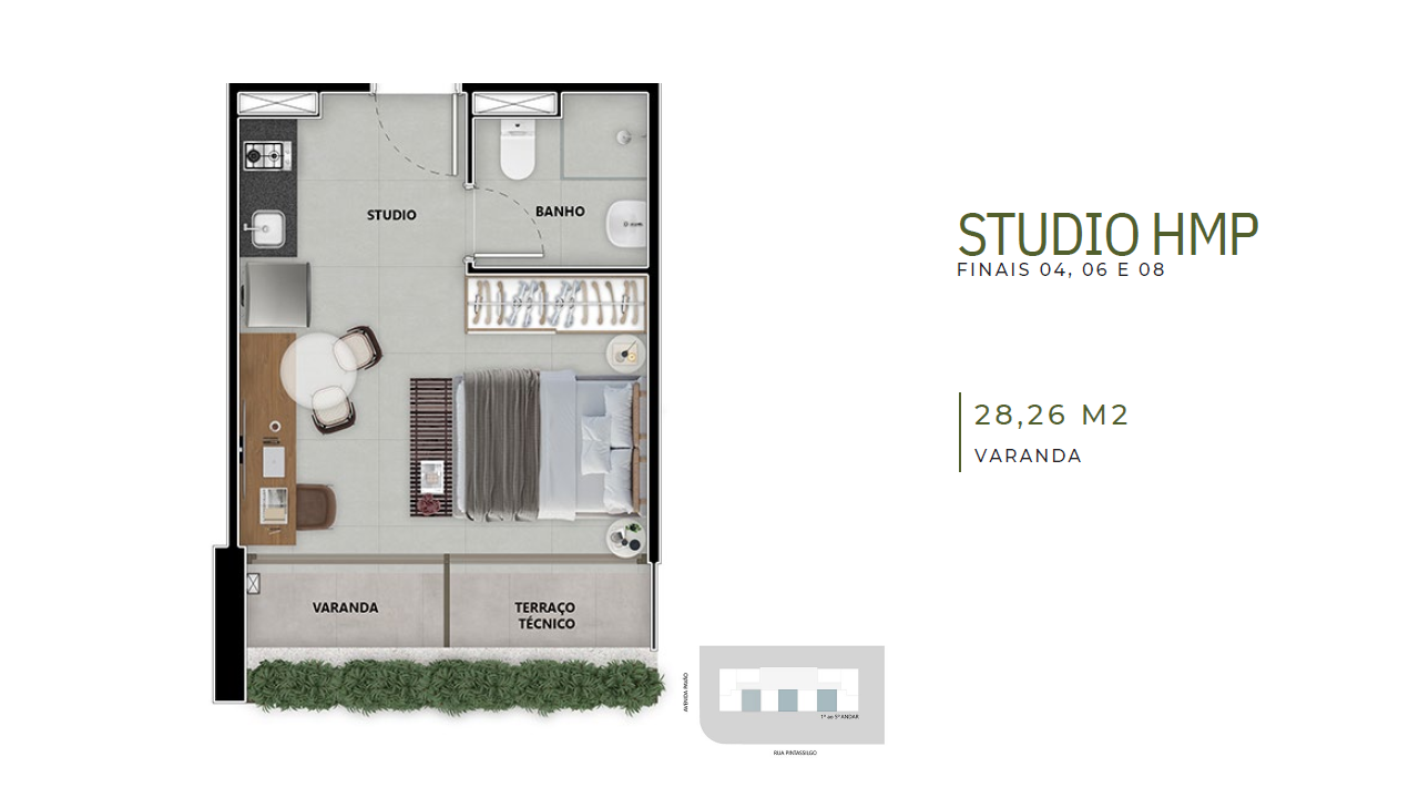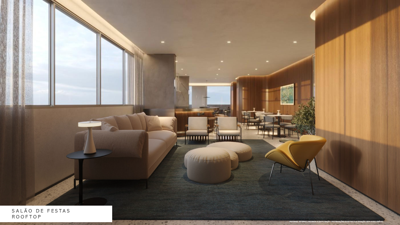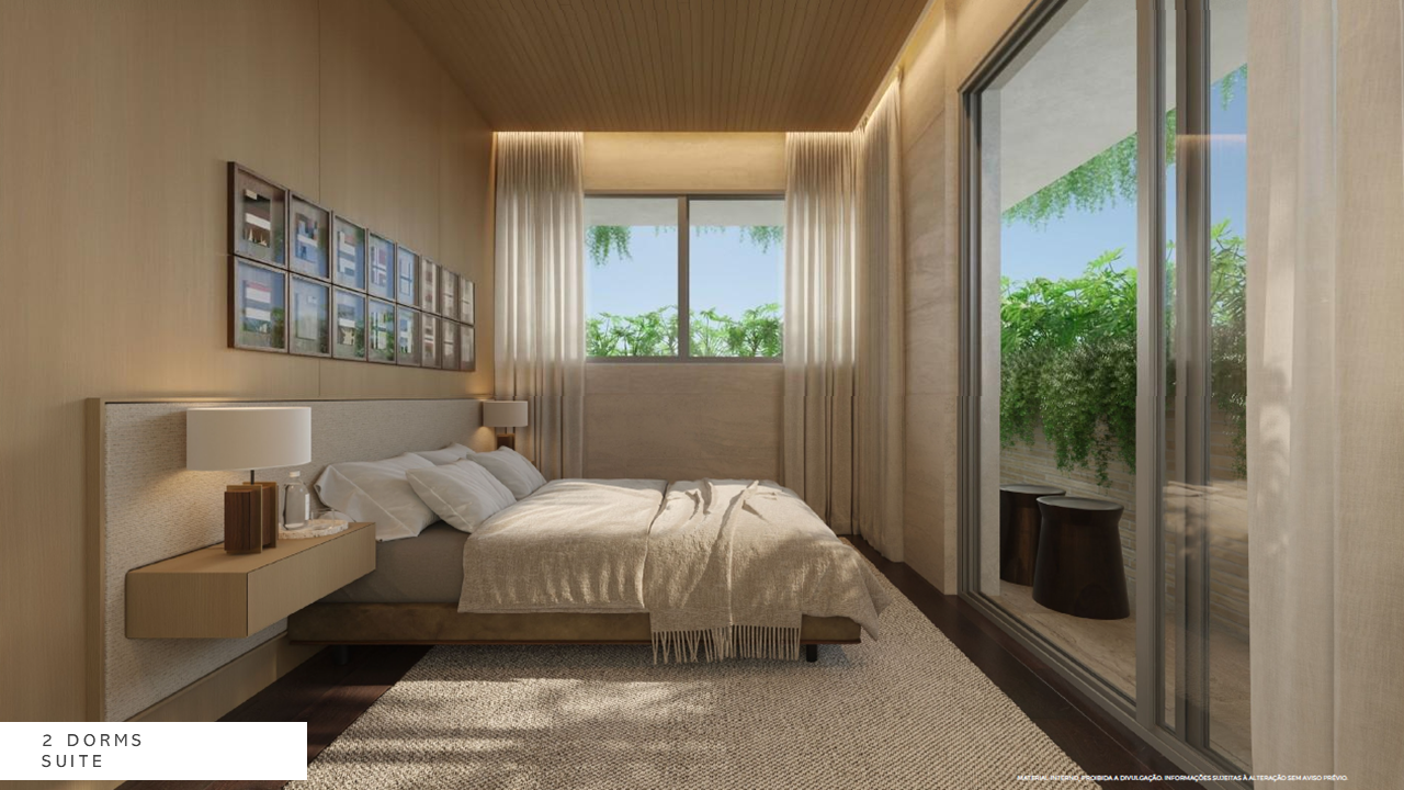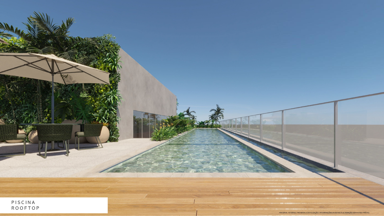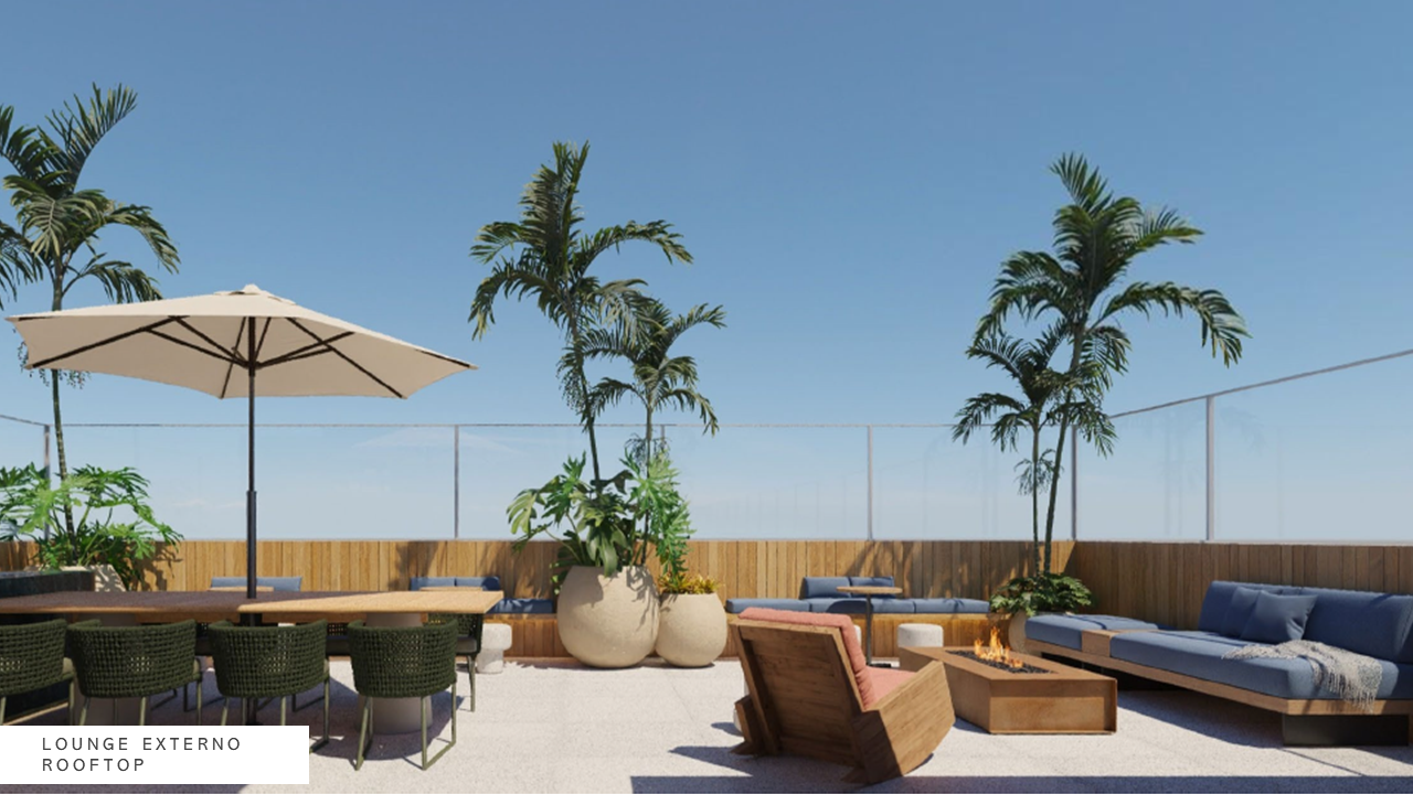 Studios e apartamentos de 1, 2 e 3 dormitórios, com uma infraestrutura completa de lazer, distribuídos em 4 pavimentos, sendo dois níveis de rooftop.